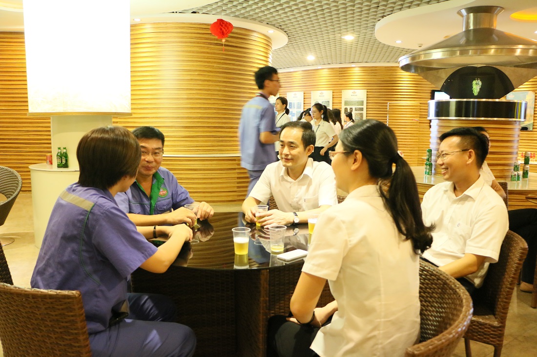 In the inner bar of Tsingtao Brewery, everyone tastes the freshly brewed beer liquid, and communicates with the staff of Tsingtao Brewery, talks about the cultural collision between different companies. It is an excellent corporate culture exchange feast.