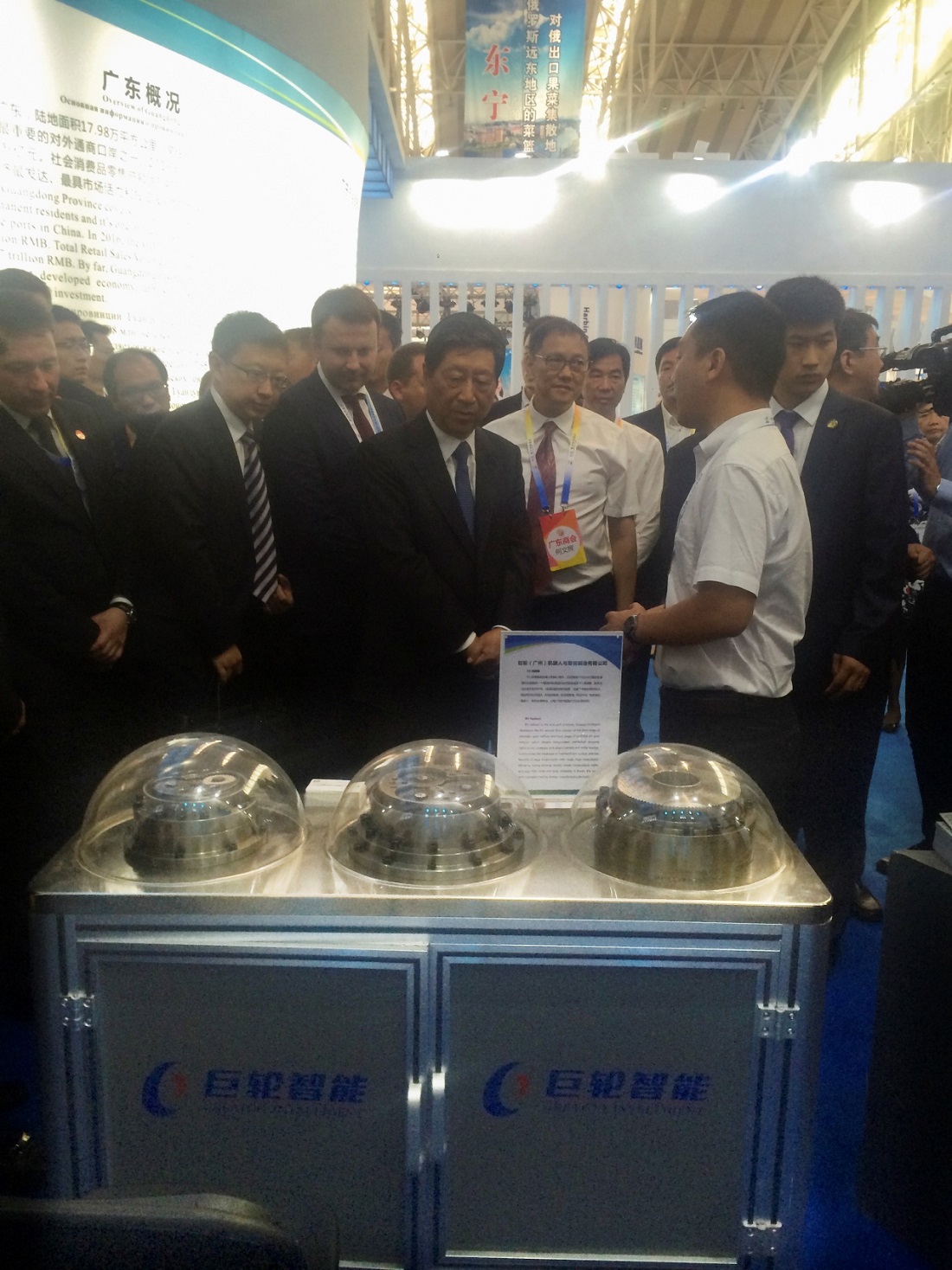 Subsequently, the Guangdong Provincial Department of Commerce Yueyang Director invited the Greatoo, EHang,and so on as a business representative to participate in the forum.Leaders attended the meeting including the Director of Guangdong Department of Commerce, President of Guangdong Chamber of Commerce in Heilongjiang Province, President of Guangdong Industrial Design Association and President of Local Chamber of Commerce.Representatives of the company introduced the company's development history and products in turn.Yue Director has confirmed the effect of the exhibition,and expressed appreciation for the scientific and technological content of the exhibits.